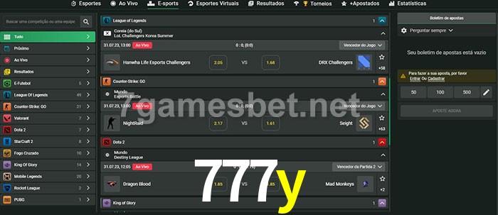 A aposta 777y oferece aos jogadores a experiência mais conveniente de apostas em eSports!